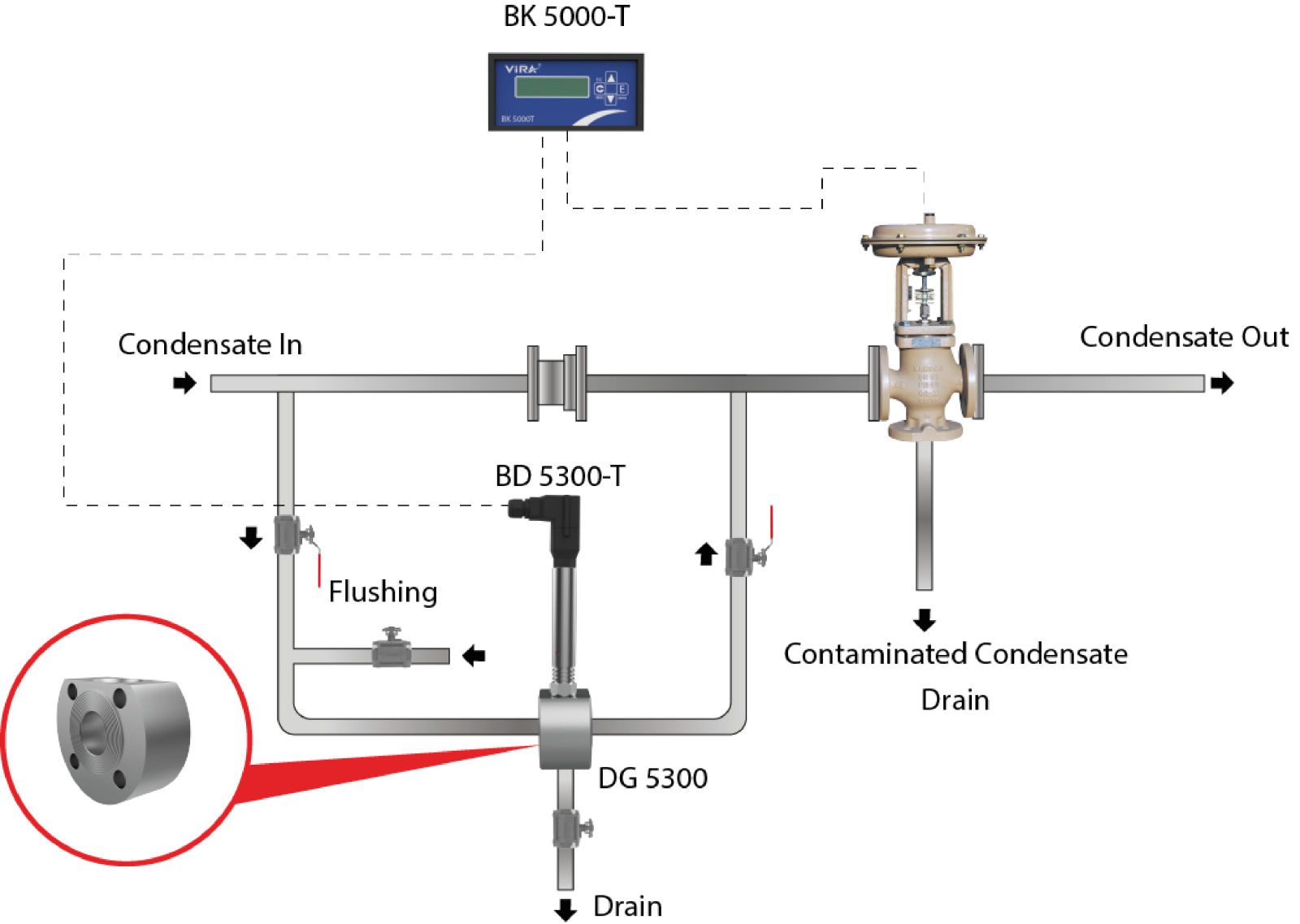 Note: BS3-T Vira Condensate Contamination Control System performs contamination control with the conductivity measurement method. It cannot detect the presence of contaminants such as oils and sugars that do not affect the conductivity.