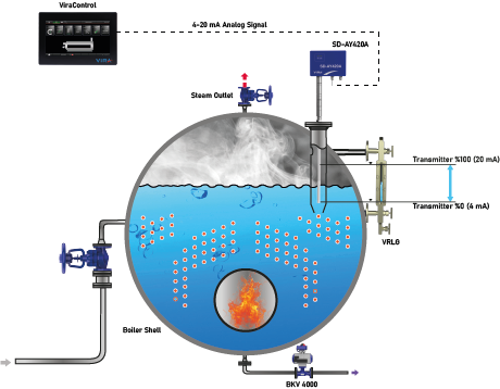 SD-AY420 Level Transmitter operates according to the capacitance measurement principle. Proportional to the water level in water tanks and boilers, a standard analog signal for automation systems generate 4-20mA DC current. It provides a current of 4 mA for the set minimum level and 20 mA DC for the set maximum value. The level transmitter helps to indicate the level of the liquid in the tank or boiler both as a percentage and 4-20 mA analog signal.