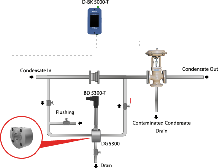 D-BS3-T, buhar sistemlerinde geri dönen kondens suyunun kalitesini izlemek amacıyla tasarlanmış iletkenlik bazlı bir kontrol sistemidir. İletkenlik probu ve kontrolör ile birlikte çalışarak, kondens içerisindeki çözünmüş madde seviyesini sürekli olarak takip eder. 24VDC ile çalışan sistem, yüksek iletkenlik tespitinde otomatik tahliye veya yönlendirme yapılmasına olanak tanır. Enerji geri kazanımı ve sistem koruması için ideal bir çözümdür.