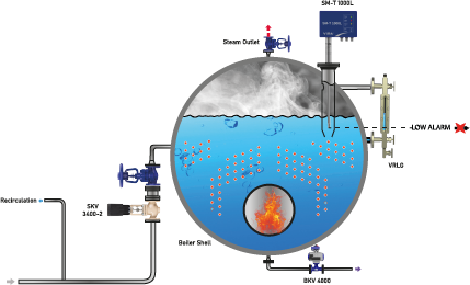 The SM-T 1000L is a compact version of the D-SML 1000 system, designed for low water level limiting in steam boilers. Combining the controller and probe in a single housing, it offers easy installation and space efficiency. The SM-T 1000L features a self-monitoring electronic design that ensures high reliability. Fully compliant with EN 12952 and EN 12953 standards, it is an ideal solution for boiler applications with limited installation space.